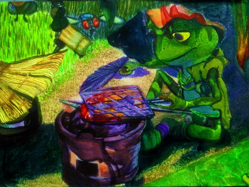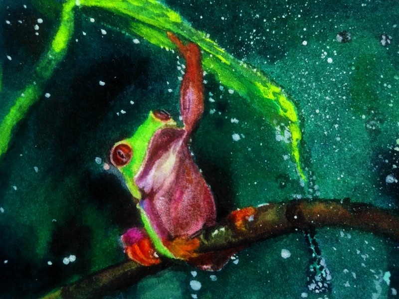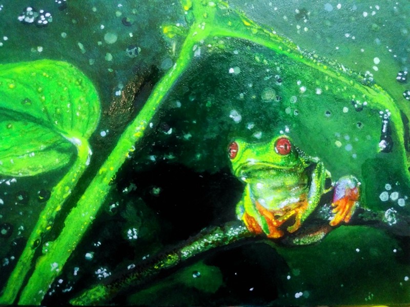 郝杰绘画:雨中的池塘