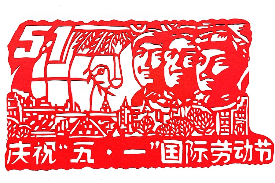 职工刻纸/剪纸:欢庆“五一”